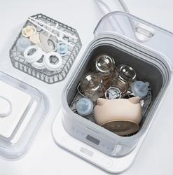 市面上常見的嬰兒玩具或容器如標明「可使用熱水蒸氣」,均可以放入本產品清洗;若未有明確標明,建議先諮詢商品製造商意見。