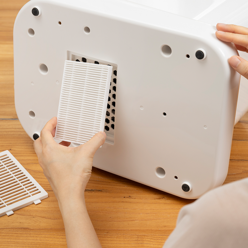 High-efficiency air filter situated at the bottom, purifying the incoming air